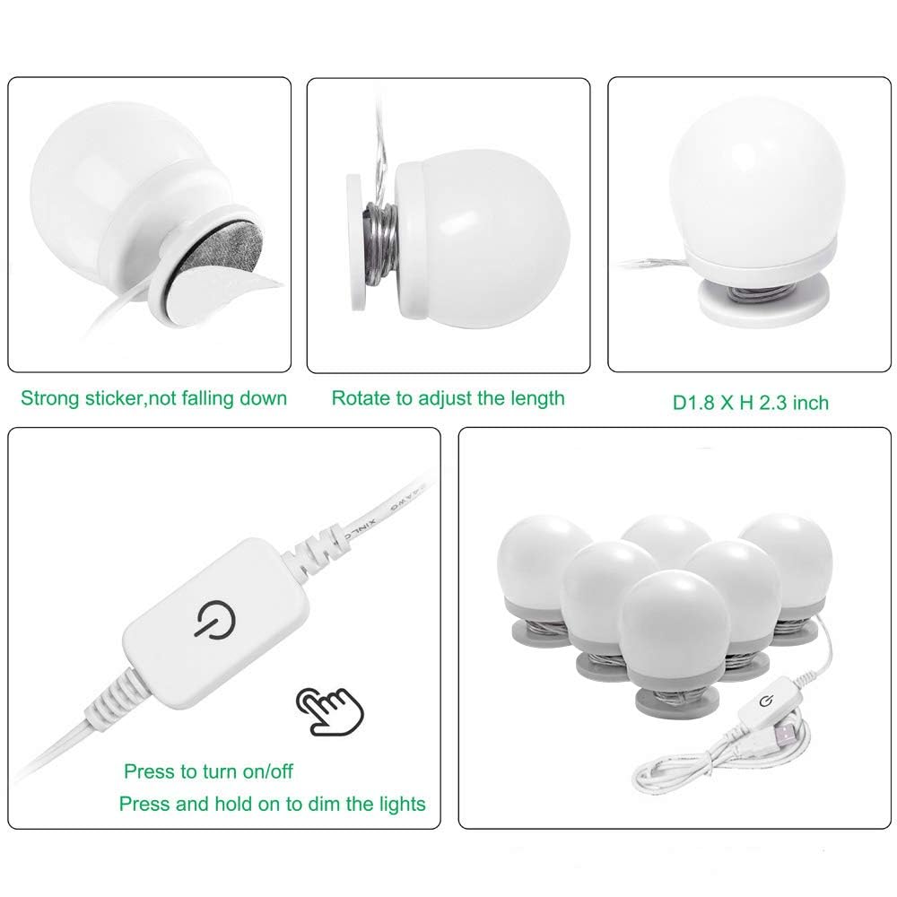 - @Easy to install safe to use: Each vanity light bulb supply with double-sided tape. Just peel and stick to the mirror whereby you like, and then connect the USB port to 5v power bank, phone charger or other device, make sure using 2A power above at least.